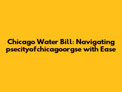 Chicago Water Bill: Your Guide To Psecityofchicagoorgse