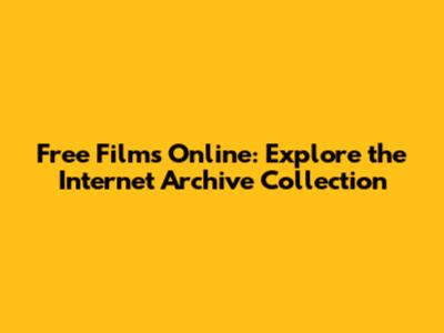 Free Films Online: Explore The Internet Archive Collection
