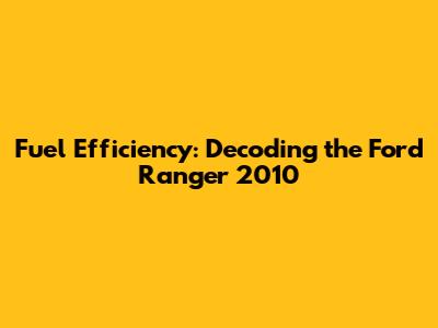 Fuel Efficiency: Ford Ranger 2010 Explained