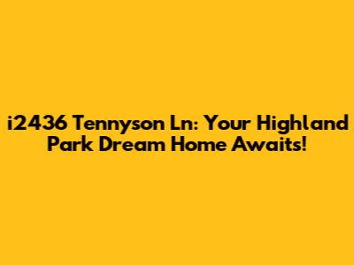 Hey there, future homeowner! Are you ready to dive into the world of luxury living? Well, buckle up, because we're about to explore a real gem: i2436 Tennyson Ln in the prestigious Highland Park neighborhood. This isn't just a house; it's a lifestyle upgrade, a chance to experience the best of what Highland Park has to offer. So, grab your favorite beverage, get comfy, and let's take a virtual tour of this amazing property. We'll be talking about everything from its stunning features to its prime location. Ready to find out why this could be your dream home? Let's get started!