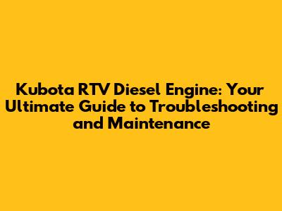 Kubota RTV Diesel Engine: Troubleshooting & Maintenance Tips