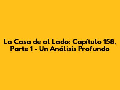 La Casa De Al Lado: Capítulo 158, Parte 1 - Análisis Detallado