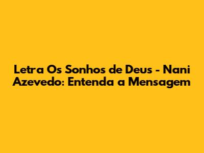 E aÃ, pessoal, pra fechar com chave de ouro, o que a gente tira de tudo isso? A letra de "Os Sonhos de Deus", na voz do Nani Azevedo, é muito mais do que uma canção bonita. É um manual de vida, um convite à reflexão e à prática da fé, da esperança e da confiança. A mensagem central é clara: Deus tem planos incrÃveis para nós, planos que superam nossa capacidade de imaginar. Nossa parte é entregar, confiar e ter paciência, sabendo que Ele está no controle e que Seus sonhos são sempre para o nosso bem. Viver pelos sonhos de Deus não significa uma vida sem desafios, mas sim uma vida com propósito, com segurança e com a certeza de que não estamos sozinhos. Significa alinhar nossos desejos com a vontade divina, permitindo que Ele nos guie para os melhores caminhos. A letra nos inspira a buscar essa conexão mais profunda, a cultivar a fé que transforma e a viver cada dia com a esperança de que o melhor ainda está por vir, orquestrado por um Pai amoroso. Que essa música continue a ser um farol em nossas vidas, iluminando nosso caminho e nos lembrando do imenso amor e do poder que nos sustentam. Continuem cantando, meditando e, acima de tudo, vivendo os sonhos de Deus! Valeu, galera!