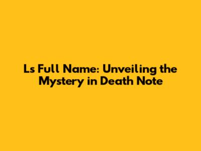 L's Full Name: Unveiling The Mystery In Death Note