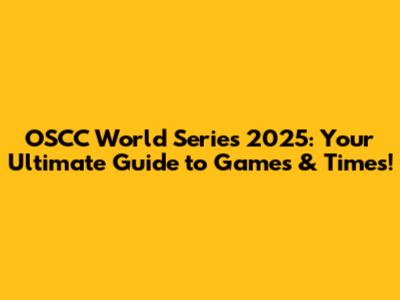 OSCC World Series 2025: Games, Times & Updates!