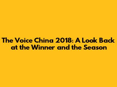 Unveiling the Champion: Who Won The Voice China 2018?
