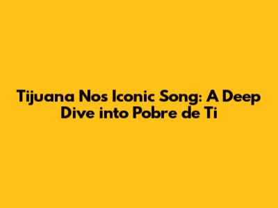 Tijuana No's Iconic Song: A Deep Dive Into 'Pobre De Ti'