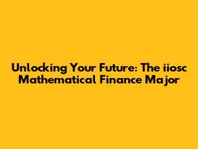 Unlocking Your Future: The Iiosc Mathematical Finance Major