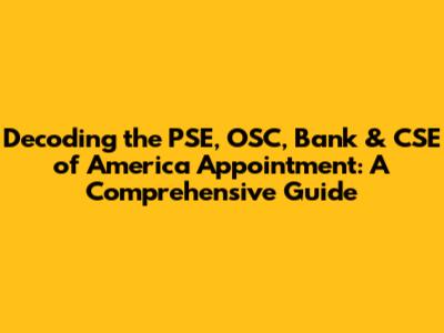 Unpacking The PSE, OSC, Bank & CSE Of America Appointment