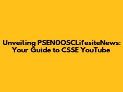 Unveiling PSEN0OSCLifesiteNews: Your Guide To CSSE YouTube
