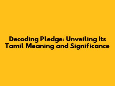 Unveiling The Tamil Meaning Of 'Pledge' & Its Nuances